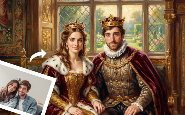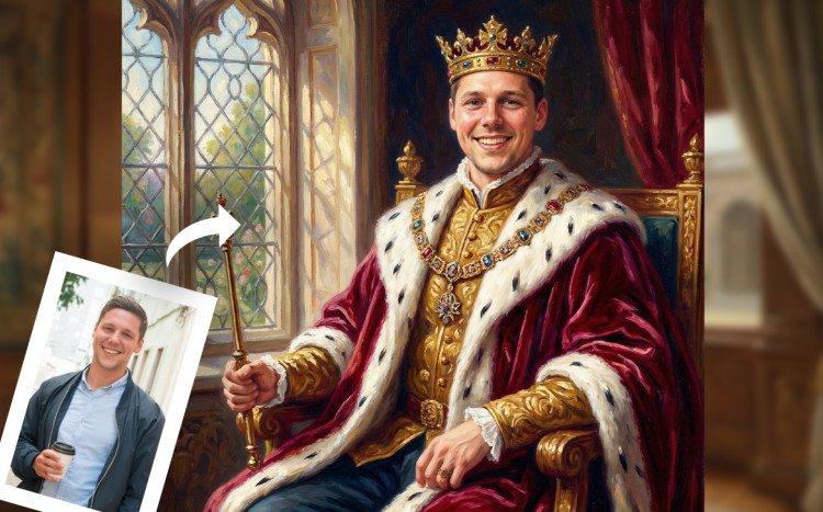 Zamień zwykłe zdjęcie w królewski portret! Wyjątkowy upominek w formie cyfrowego portretu inspirowanego dawnym malarstwem. Osoba obdarowana przesyła swoje zdjęcie, wybiera styl portretu (król, królowa, książę, księżniczka lub para królewska), a w ciągu kilku minut otrzymuje gotowe dzieło na e-mail.