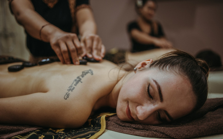 Balijski Masaż Gorącymi Kamieniami dla Dwojga to niezwykły rytuał, który umożliwia parze jednoczesne doświadczenie głębokiego odprężenia i regeneracji. To doskonała propozycja łącząca tradycyjne techniki masażu relaksacyjnego z dobroczynnym działaniem ciepłolecznictwa i elementami akupresury. Podczas masażu wykorzystywane są specjalne bazaltowe kamienie wulkaniczne, które mają zdolność doskonałego magazynowania i oddawania ciepła ciału. Rozgrzane kamienie pomagają w szybszym rozluźnieniu spiętych mięśni, znacząco poprawiają krążenie krwi i limfy oraz wzmacniają efekt relaksacyjny.
