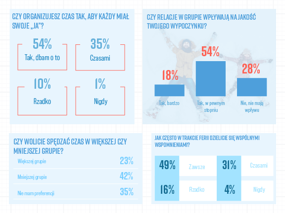 Tak!Aż 54% respondentów dba o to, by podczas ferii każdy miał chwilę dla siebie. To kluczowe, by wrócić z urlopu wypoczętym, a nie bardziej zmęczonym niż przed wyjazdem.
