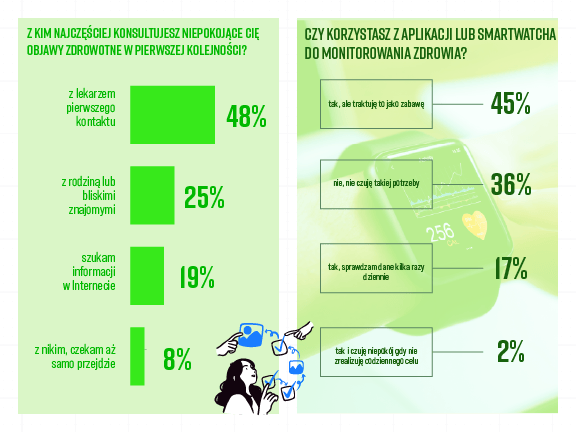 Z drugiej strony, technologia to też nasze źródło wiedzy. Skąd czerpiemy informacje o profilaktyce? Tu małe zaskoczenie: wygrywają media społecznościowe (34%), wyprzedzając rodzinę i znajomych (29%) oraz… samych lekarzy (18%). Kiedy jednak coś nas zaniepokoi, na szczęście wygrywa rozsądek – 48% w pierwszej kolejności konsultuje objawy z lekarzem pierwszego kontaktu. Choć przyznajmy się szczerze, 19% z nas i tak najpierw odpala wyszukiwarkę i u Dr. Google’a diagnozuje u siebie rzadkie tropikalne choroby. Znamy to z autopsji! 😅