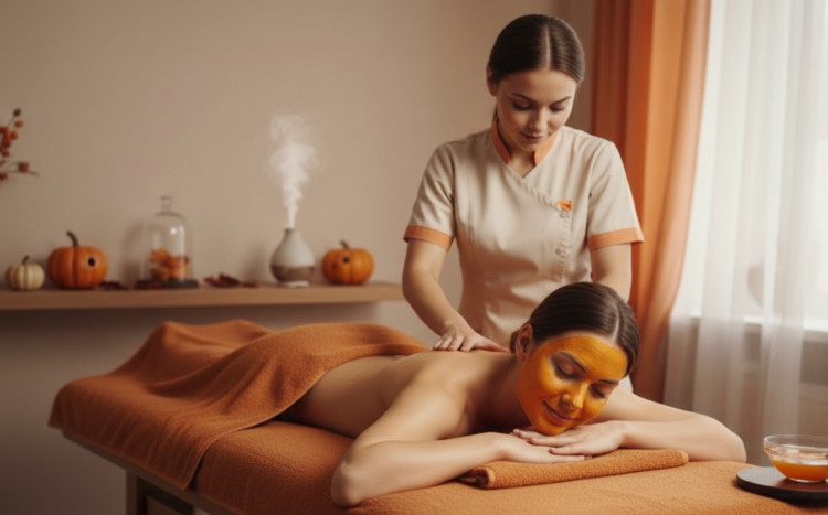 Jesienny dzień SPA to rytuał, który pozwala w pełni zanurzyć się w przyjemnościach aromaterapii i relaksującej pielęgnacji. W trakcie 90 minutowego zabiegu czeka powitalna kawa z syropem dyniowym, która wprowadza w ciepły, jesienny nastrój. Twarz zostaje odżywiona dyniową maską, a masaż twarzy z elementami kobido przywraca naturalną promienność i odprężenie. Relaksacyjny masaż pleców z elementami kobido body rozluźnia napięte mięśnie, a peeling dyniowy na ciało zapewnia gładkość i aksamitną skórę. Całość dopełnia dyniowa maska na ciało oraz aromaterapia dynią i słodkim karmelem, która otula niczym ciepły kocyk w chłodny, jesienny dzień. To idealny rytuał dla osób, które chcą połączyć relaks, pielęgnację i magiczny, sezonowy aromat.