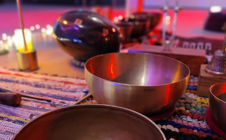 Kąpiel w dźwięku: Fale dźwiękowe mis i gongów wprowadzają mózg w stan relaksu (fale Alpha i Theta), co redukuje poziom kortyzolu (stresu).