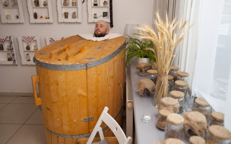 Sesję w fitobeczce – ziołowej saunie parowej,
