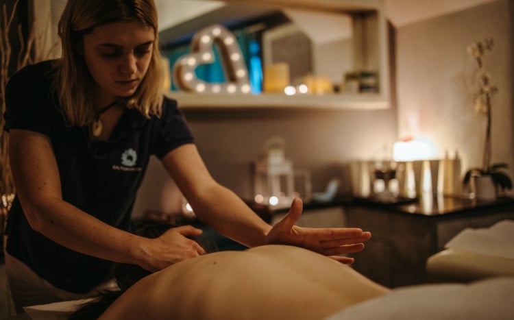 Masaż relaksacyjny to rytuał, który wprowadza w niesamowity stan odprężenia. Wykonywany płynnymi i rytmicznymi ruchami w akompaniamencie nastrojowej muzyki i przy unoszącym się zapachu aromatycznych olejków, skutecznie uwalnia od nagromadzonych napięć związanych ze stresem, wewnętrznym niepokojem i zmęczeniem. Zabieg dodaje energii, sprzyja wyciszeniu oraz harmonizuje ciało i ducha. Masaż świetnie dopełnia seans w saunie fińskiej, który łagodzi bóle, pobudza krążenie krwi i pielęgnuje skórę.