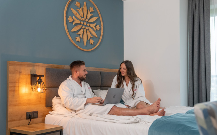 Goście mają do dyspozycji strefę SPA z saunami, basenem z jacuzzi oraz innymi atrakcjami, które pozwolą na pełne odprężenie. Hotel oferuje również udogodnienia dla rodzin z dziećmi, w tym salę zabaw, oraz atrakcje dla grup i gości biznesowych. Bezpłatny parking i Wi-Fi dodatkowo podnoszą komfort pobytu. Bliskość natury oraz spokój otaczającego krajobrazu sprawiają, że jest to idealne miejsce zarówno na krótki wypoczynek, jak i dłuższy pobyt. W cenę vouchera wliczone są posiłki - śniadanie i obiadokolacja.