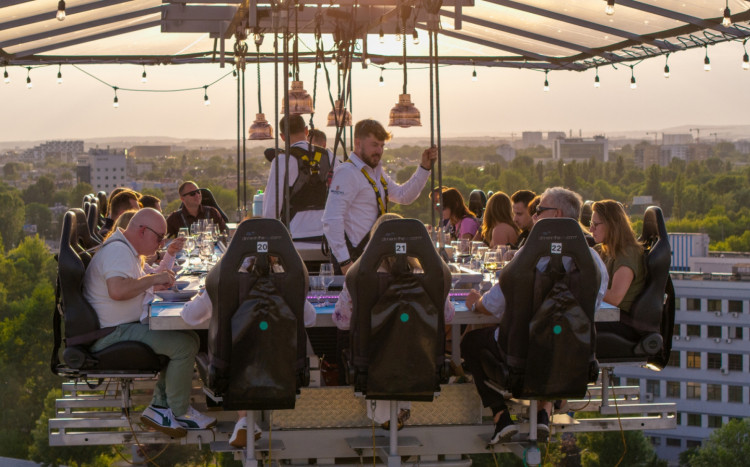Dinner in the Sky to nietypowa restauracja w powietrzu oferująca spektakularne doświadczenie kulinarne, w którym fine dining łączy się z emocjami i widokiem, jakiego nie oferuje żadna tradycyjna restauracja. Goście zajmują miejsca przy stabilnej platformie unoszonej dźwigiem na wysokość około 50 metrów. Komfortowe fotele wyposażone w pasy bezpieczeństwa oraz profesjonalna, międzynarodowo szkolona obsługa gwarantują pełne bezpieczeństwo i wygodę.