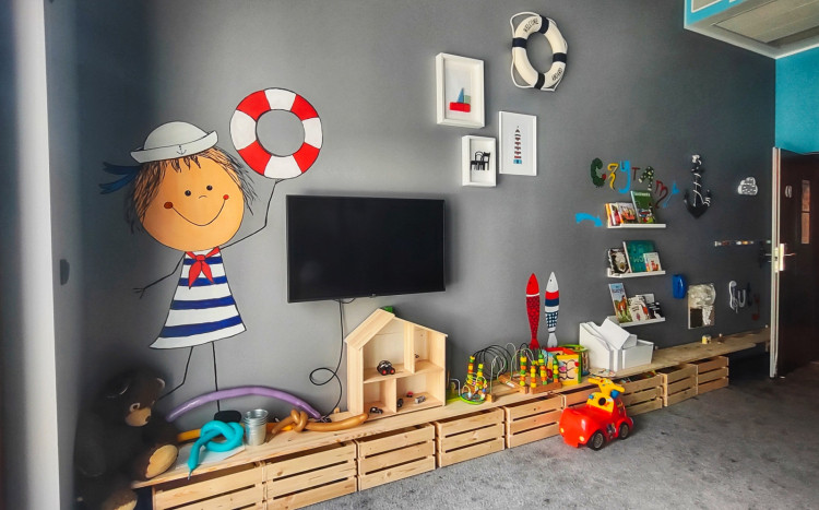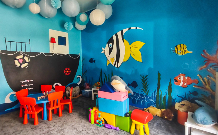 Pokój zabaw m.in. z basenem z kulkami, tablicą magnetyczną, z dostępem do licznych zabawek
