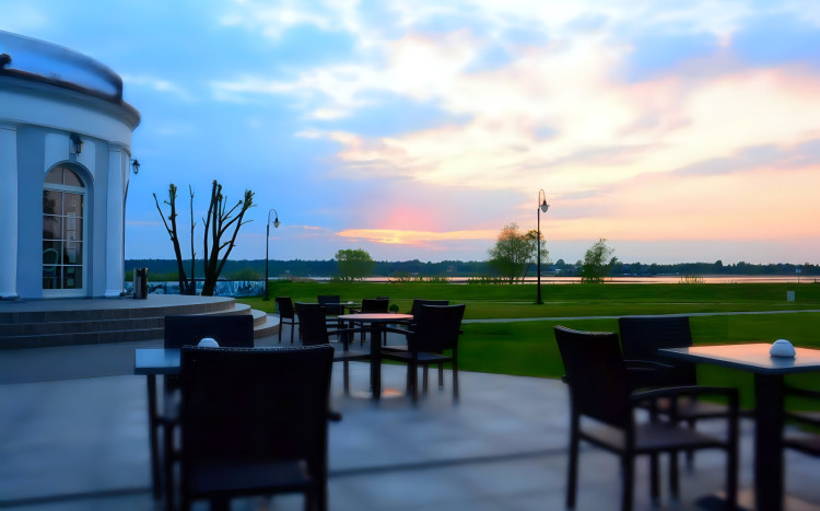 Nastrojową atmosferę w eleganckich wnętrzach restauracji z widokiem na Zalew Domaniowski