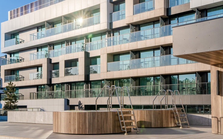 Hotel Shellter Resort & SPA to nowoczesny, luksusowy obiekt otoczony sosnowymi lasami, szerokimi plażami i malowniczym jeziorem. Architektura hotelu harmonijnie wpisuje się w naturalne otoczenie, a duże przeszklenia sprawiają, że natura staje się integralną częścią wnętrz. Kolorystyka inspirowana krajobrazem – odcienie beżu, grafitu, szarości i drewna – tworzy spokojną, elegancką atmosferę. Hotel oferuje 226 pokoi, dwie restauracje, bary oraz rozbudowaną strefę wellness i SPA z bezpośrednim dostępem do renomowanej strefy LA PERLA. Goście mają do dyspozycji baseny wewnętrzne i zewnętrzne typu infinity, kompleks saun, strefy relaksu, korty do squasha, siłownię oraz liczne przestrzenie rekreacyjne. To miejsce stworzone do wypoczynku o każdej porze roku, w bezpośrednim kontakcie z unikatową przyrodą.
