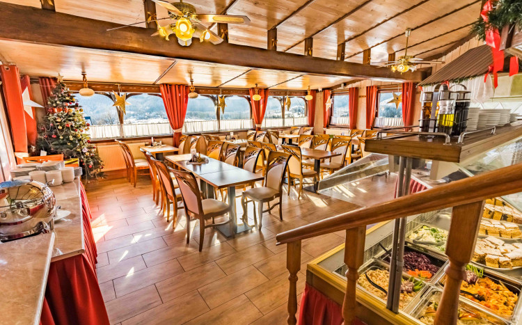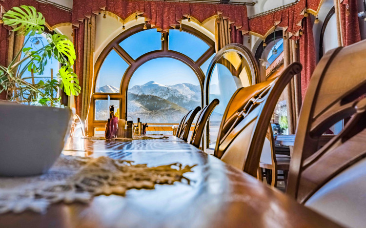 Romantyczny pobyt w Tatrach to doskonały pomysł, by zatrzymać się w Górskim Pałacyku. Zimą góry zachwycają ośnieżonymi szlakami, wiosną oczarowują budzącą się do życia przyrodą, a latem lub jesienią pozwalają na korzystanie w pełni z uroków natury. Podhalańska architektura Górskiego Pałacyku harmonijnie wpisuje się w tatrzański krajobraz z Giewontem w tle. Pakiet obejmuje noclegi, śniadania, uroczystą kolację (kolacja tylko w 5 dniowym wariancie pobytu) oraz romantyczny wystrój pokoju z szampanem. Posiłki serwowane są w restauracji, która zaprasza na dania kuchni regionalnej. W obiekcie można zameldować się od 16:00, a wymeldowanie obowiązuje do godziny 10:00.