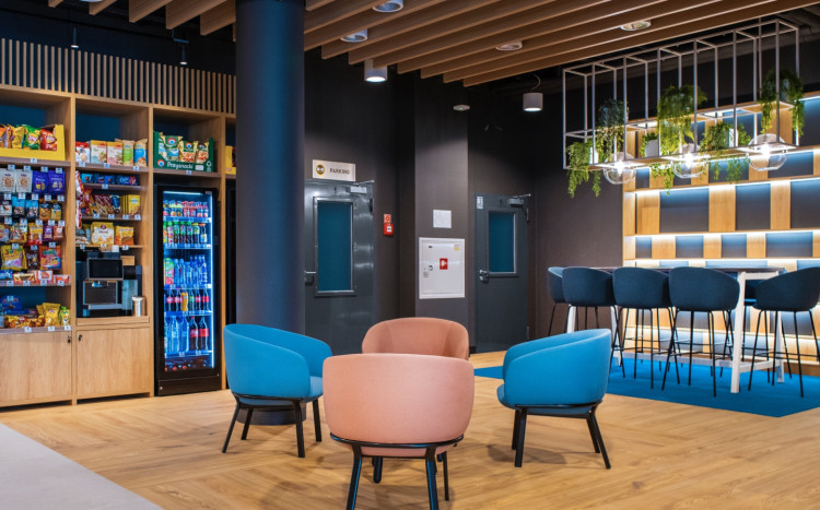 B&B HOTEL Kielce Centrum to nowoczesny hotel oferujący komfortowy nocleg w samym sercu miasta. Goście mają do dyspozycji 114 przestronnych pokoi z wygodnymi łóżkami, biurkiem, smart TV, klimatyzacją oraz prywatną łazienką z prysznicem. Na terenie hotelu dostępny jest całodobowy B&B HOTELS Shop z napojami i przekąskami, klimatyczne lobby do relaksu oraz bezpieczny parking (odpłatny). Codziennie rano serwowane jest śniadanie w formie bufetu, a dla osób podróżujących służbowo hotel oferuje sale konferencyjne dla 30 osób.