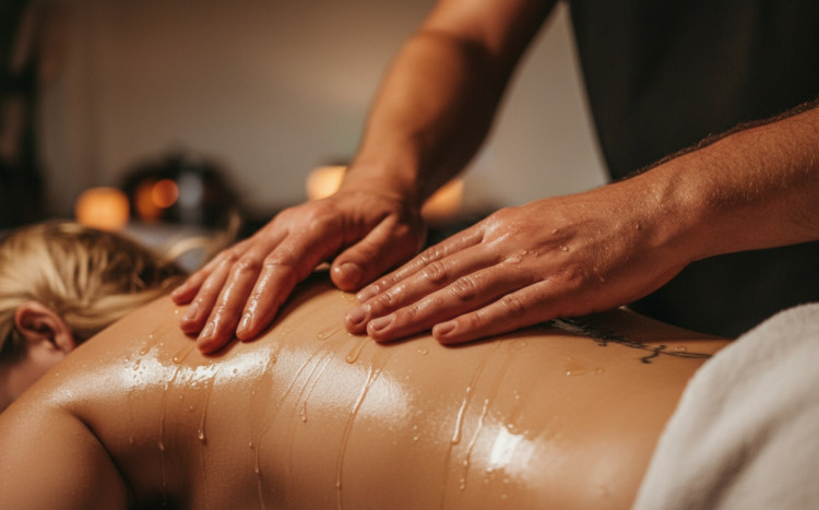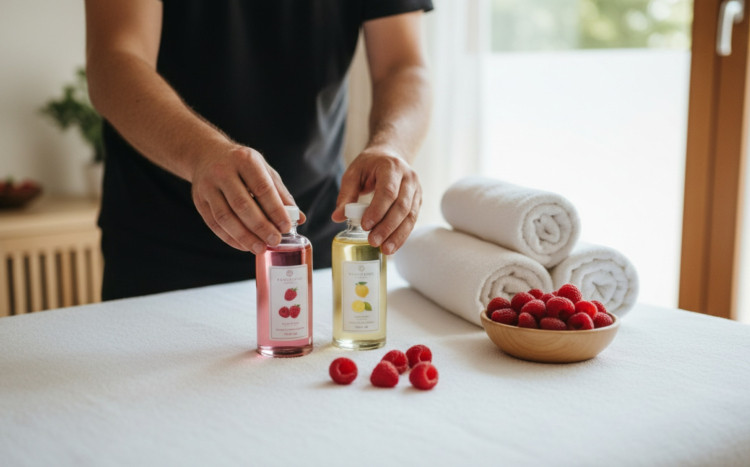 Relaksujący masaż wonnymi olejkami o świeżym, owocowym zapachu,