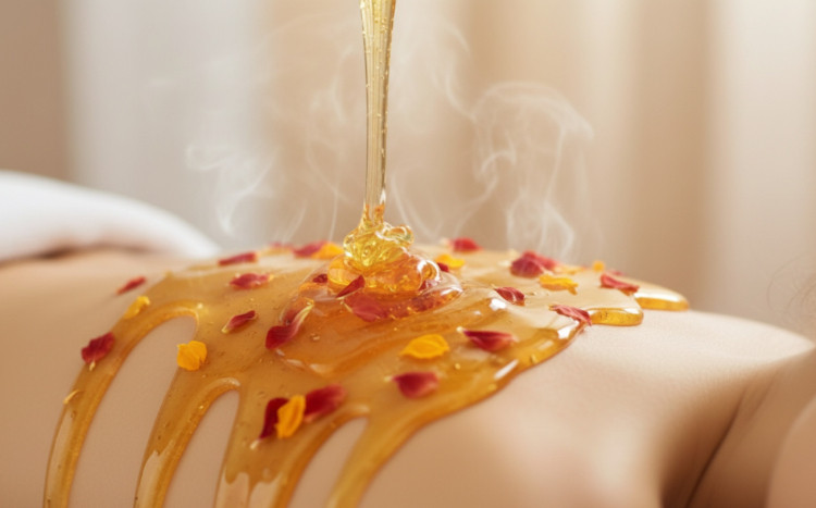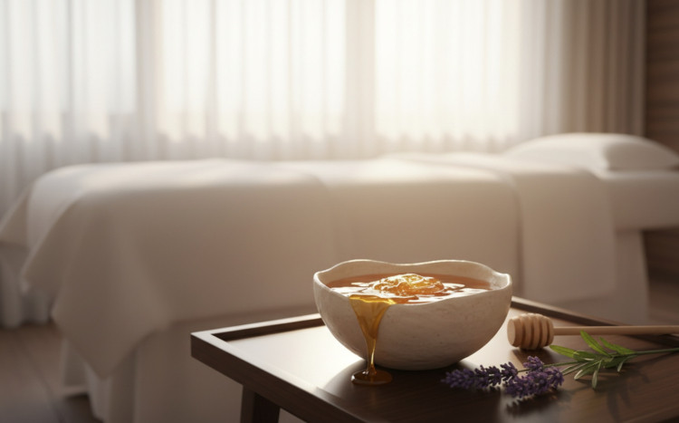 Rytuał SPA Złoto Pszczół to odżywcza ceremonia, która otula ciało naturalnym ciepłem i słodyczą miodu. Zaczyna się delikatnym peelingiem miodowo-cukrowym, który wygładza skórę i pobudza mikrokrążenie. Następnie nakładana jest regenerująca maska z miodu i mleka – składników znanych ze swoich właściwości kojących, nawilżających i uelastyczniających. Kolejnym etapem jest masaż całego ciała ciepłym miodem połączonym z olejem, który rozluźnia napięcia, głęboko odpręża i pozostawia skórę jedwabistą w dotyku. Całość wieńczy relaks przy naparze z melisy z odrobiną miodu, pozwalający jeszcze bardziej wyciszyć ciało i zmysły. To ciepły, otulający rytuał, idealny dla osób potrzebujących uspokojenia, ukojenia i intensywnej pielęgnacji.