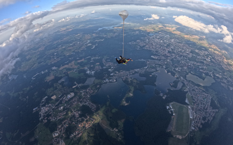 Podczas skoku towarzyszy doświadczony instruktor, dbający o bezpieczeństwo i komfort uczestnika. Cała przygoda trwa około godziny, z czego na swobodne spadanie przypada 40-50 sekund, a lot na otwartej czaszy trwa od 7 do 10 minut. Zaleca się jednak zarezerwowanie większej ilości czasu ze względu na warunki pogodowe, które mogą wpłynąć na realizację skoku.