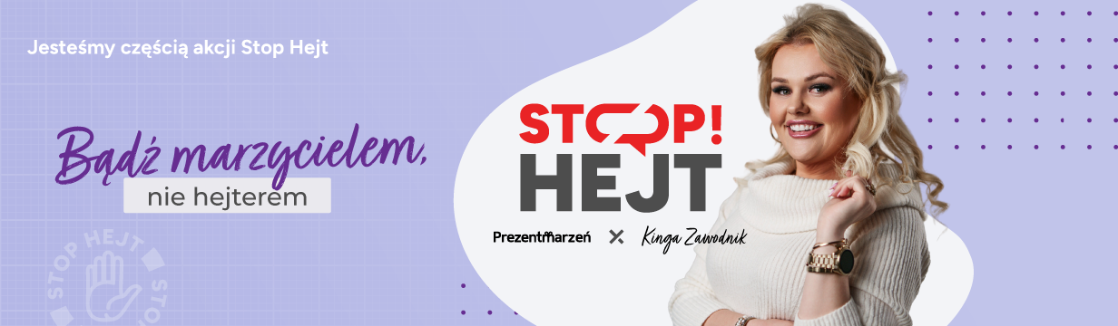 Dlatego staliśmy się partnerem akcji „Stop Hejt" Kingi Zawodnik. To dla nas coś więcej niż współpraca – to misja! Wierzymy, że pozytywne doświadczenia są najlepszym sposobem na negatywne emocje.