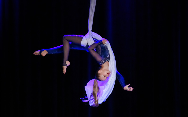 • wybór dyscypliny: koło (aerial hoop) lub szarfy (aerial silks)
