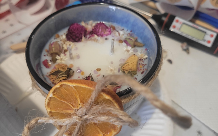 Nowa umiejętność: Osoba obdarowana pozna tajniki pracy z woskiem sojowym, doboru knotów, samodzielnego stworzenia świecy sojowej.