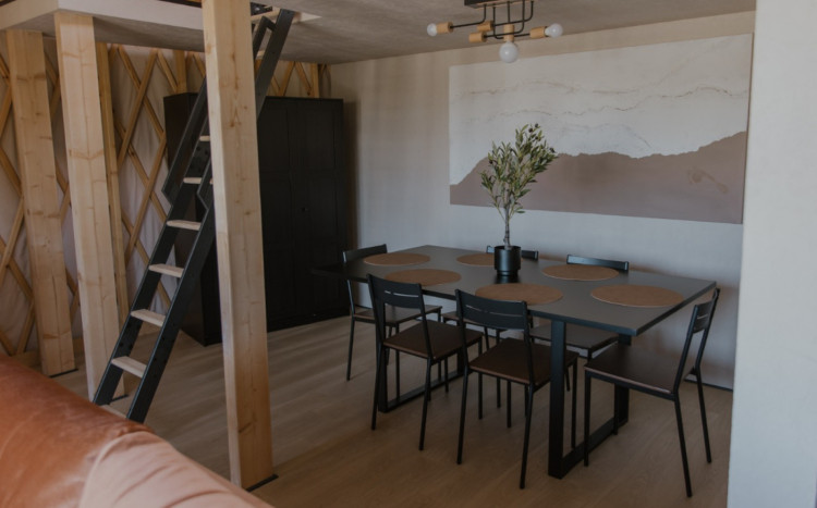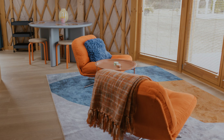 Jurta Stokrotka wyróżnia się radosnym, barwnym wystrojem oraz przestrzenią stworzoną z myślą o wspólnym spędzaniu czasu. Na miejscu czekają gry planszowe, kącik zabaw, przytulna strefa wypoczynku oraz widok na staw, który dodaje pobytowi wyjątkowego klimatu.