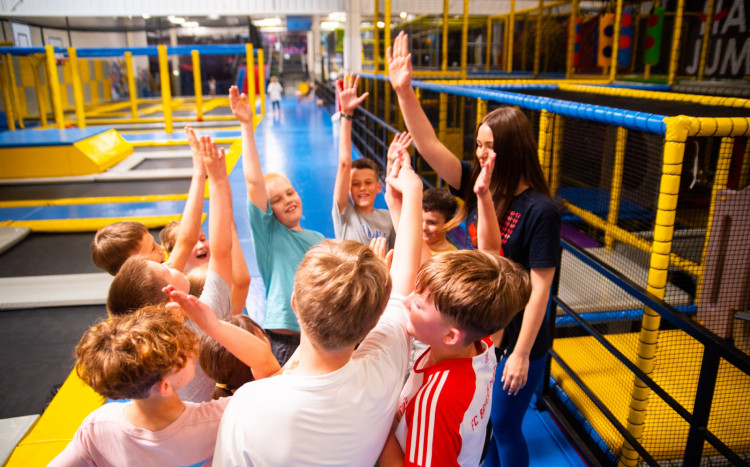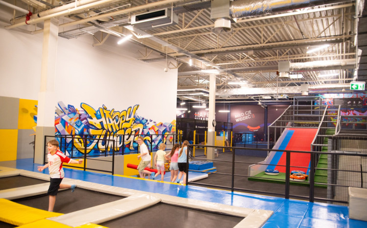 • Atrakcje: trampoliny, parkour, gry zespołowe, strefa dziecięca